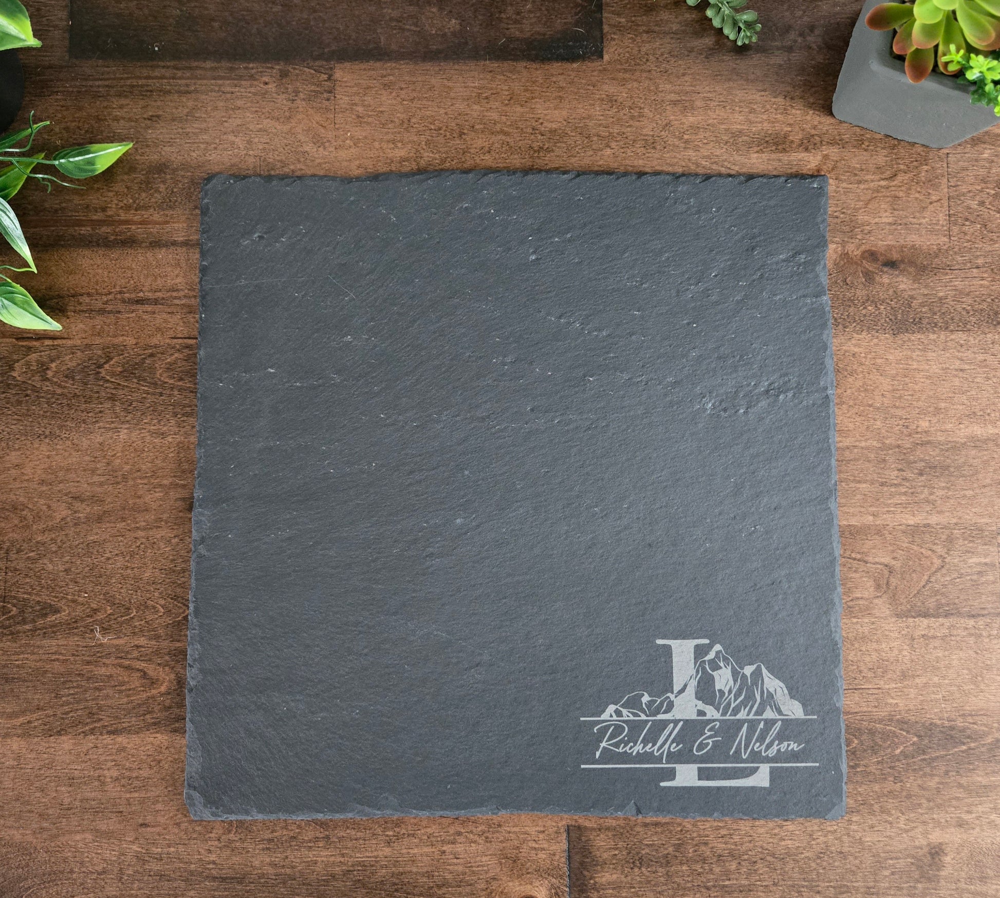 An engraved slate serving set that’s as functional as it is beautiful — designed to be enjoyed, not stored away. Perfect for weddings, housewarmings, or anyone who loves to entertain