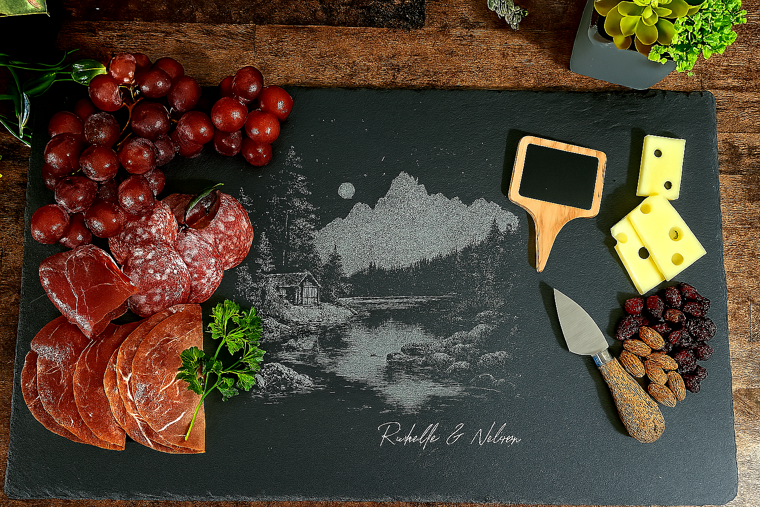 Personalized Slate Serving Set – Engraved Charcuterie Board & Accessories | Made in Edmonton